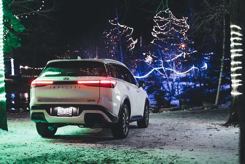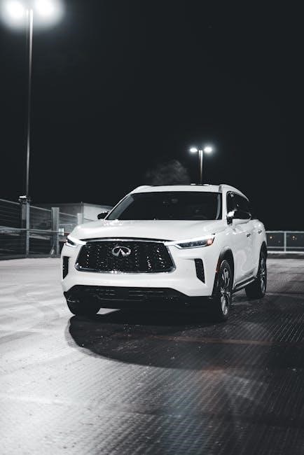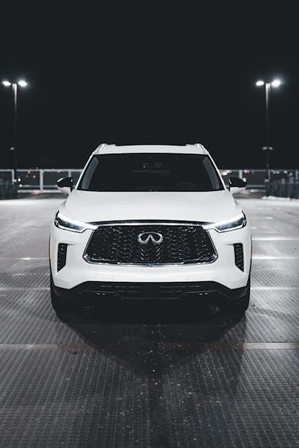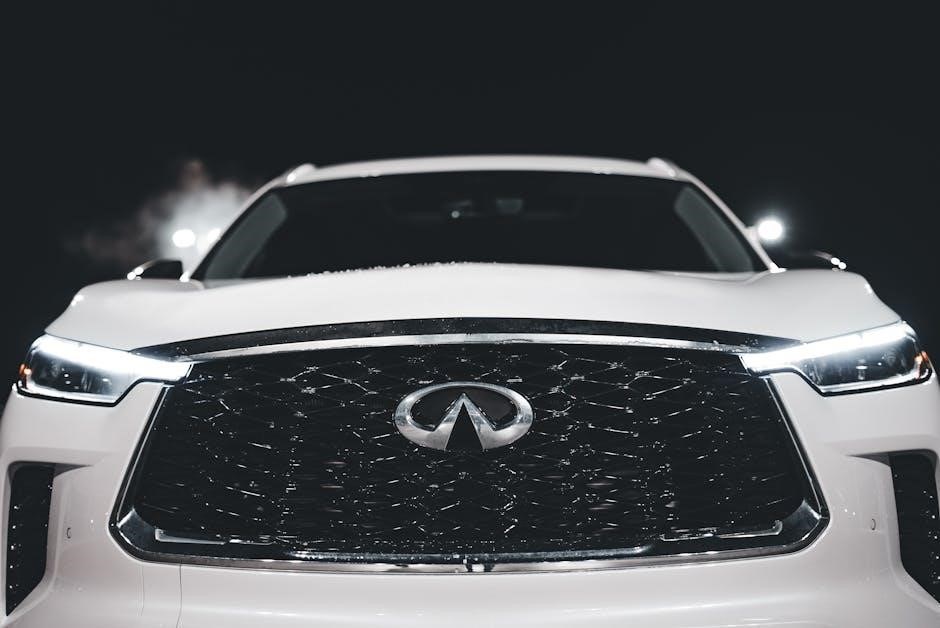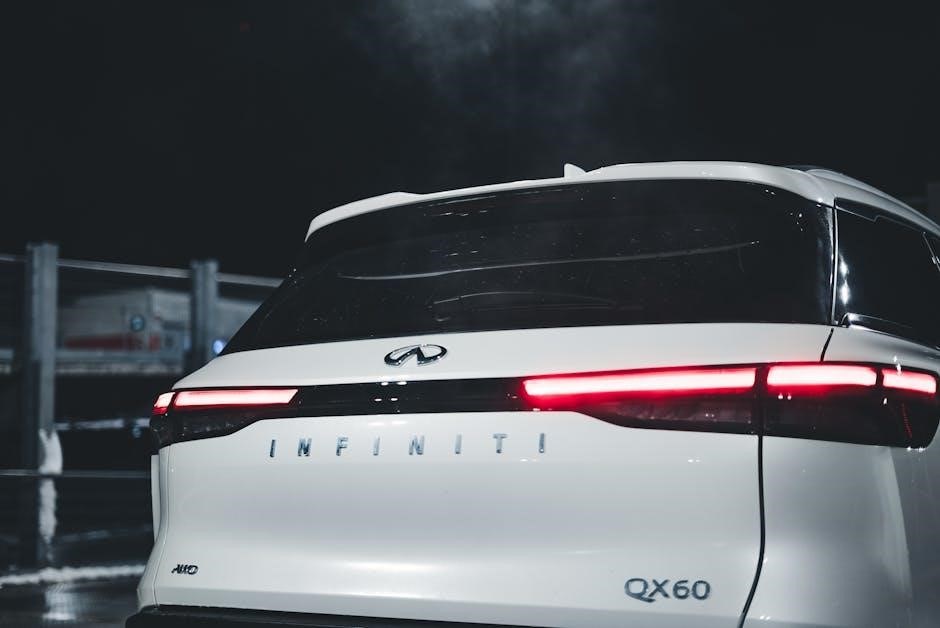 This guide details starting your 2014-2026 Infiniti QX60 without the key fob, covering access, alarm deactivation, and step-by-step procedures; It also addresses troubleshooting and key replacement.